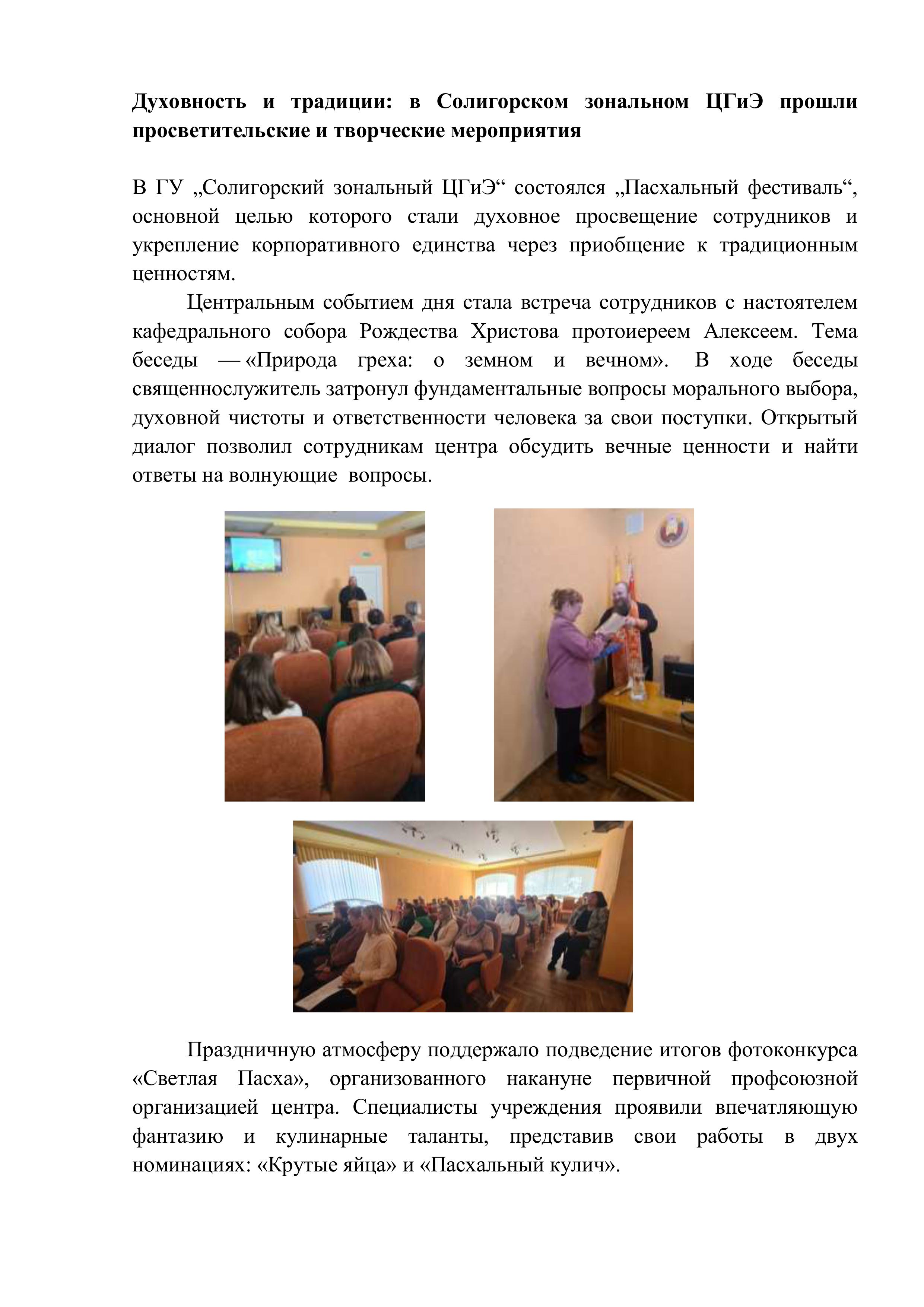 Духовность и традиции: в Солигорском зональном ЦГиЭ прошли просветительские и творческие мероприятия